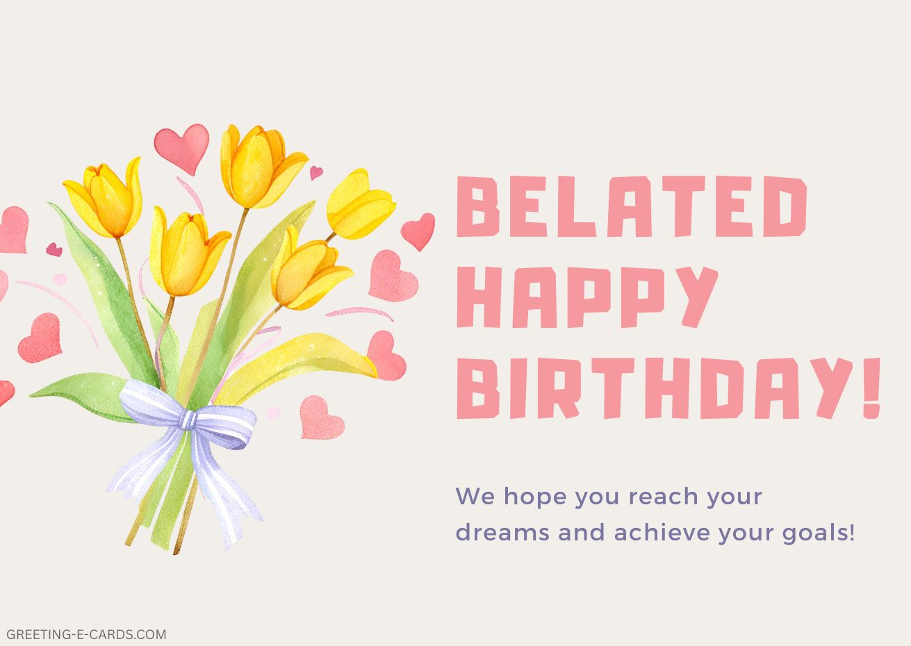 Send this lovely belated birthday e-card with beautiful yellow tulips and heartfelt wishes.