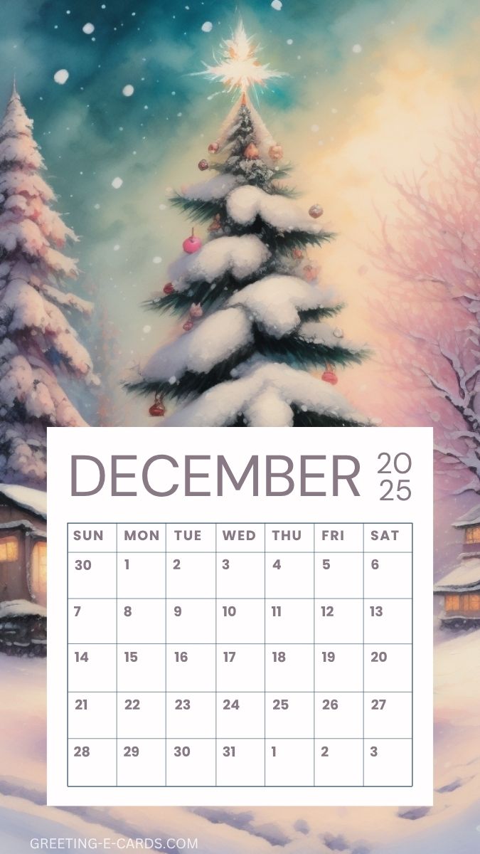 Download this free December 2025 Christmas calendar wallpaper for your phone.