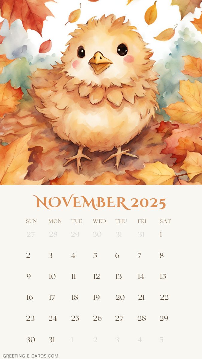 Cute Chicken November 2025 Calendar Phone Wallpaper