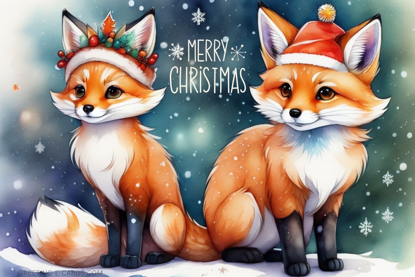 Send this adorable Christmas e-card featuring two cute foxes to your loved ones this holiday season.