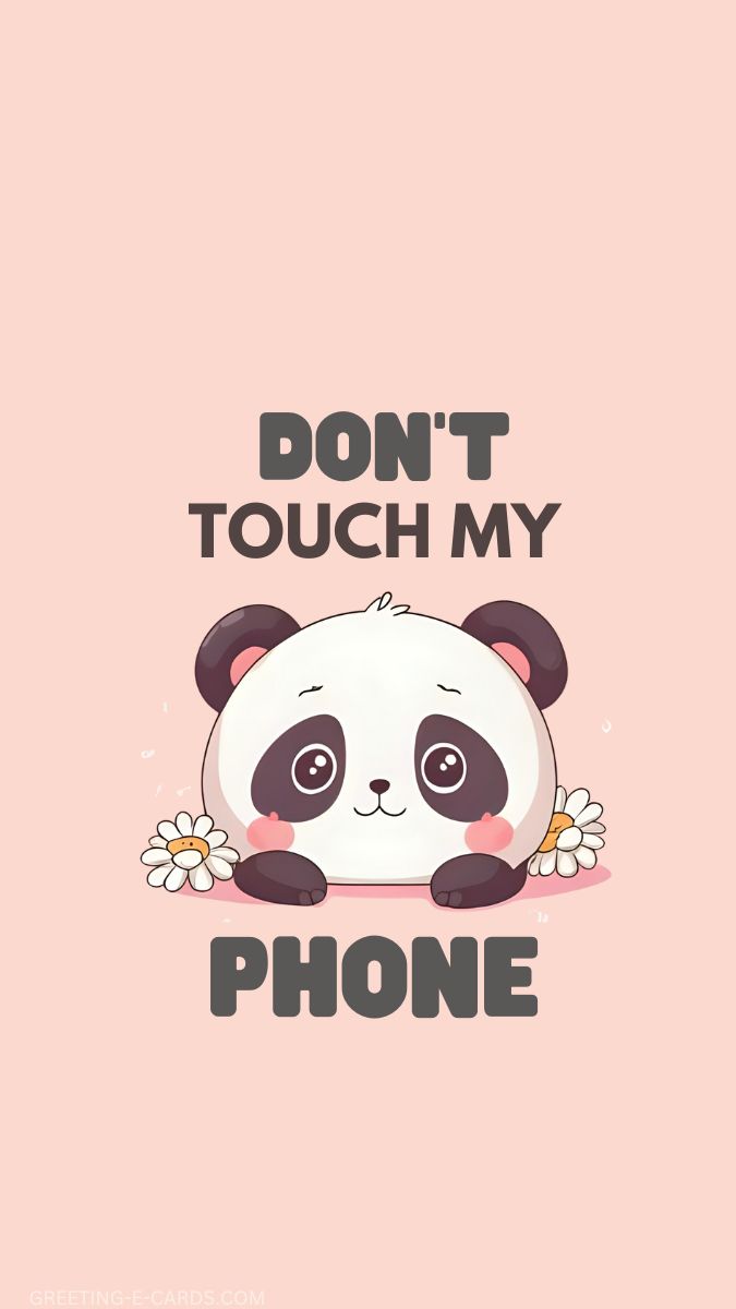 Download this cute panda phone wallpaper with a funny 'Don't Touch My Phone' quote to personalize your lockscreen.