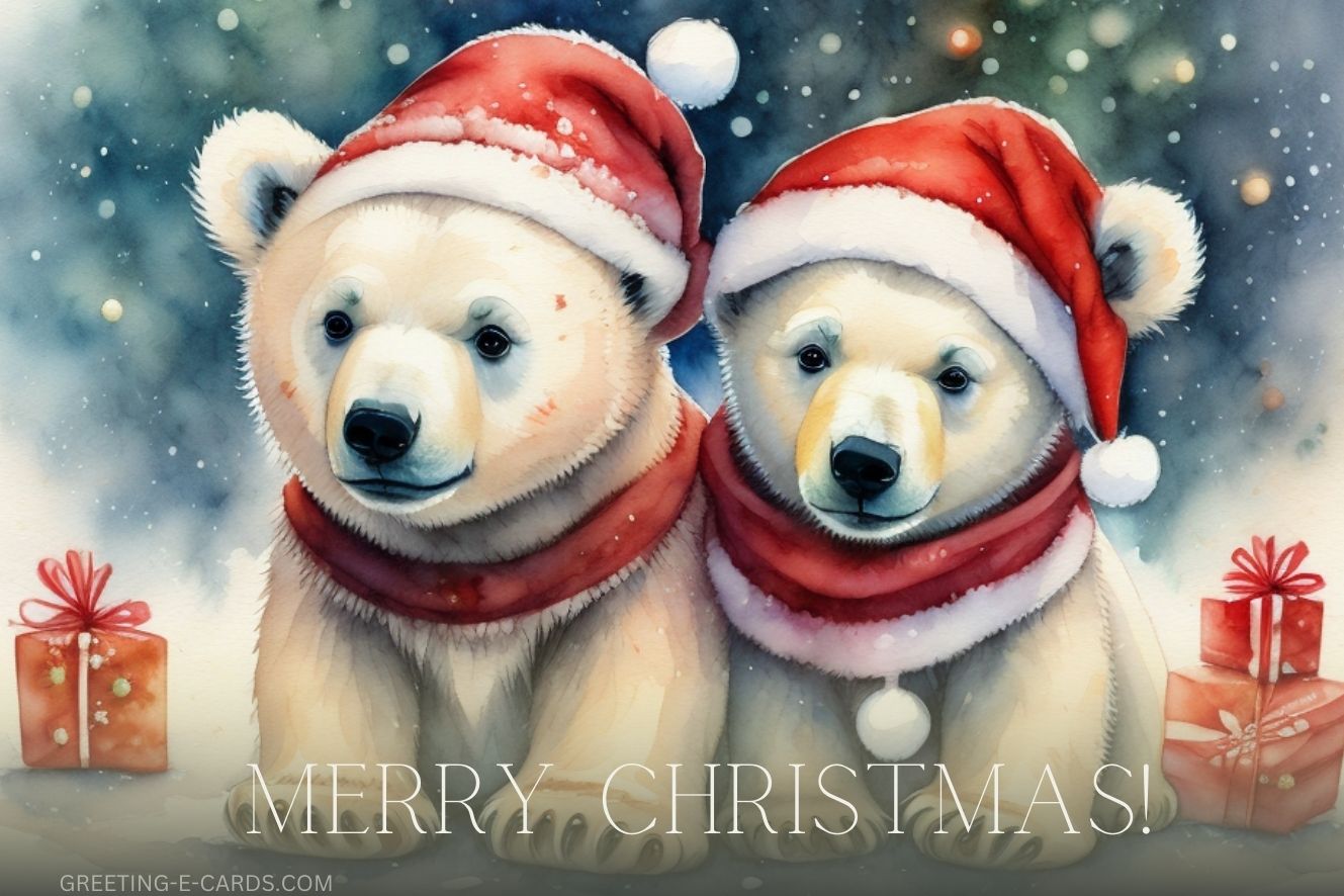 Send this cute Christmas e-card with adorable polar bears to your loved ones this holiday season.