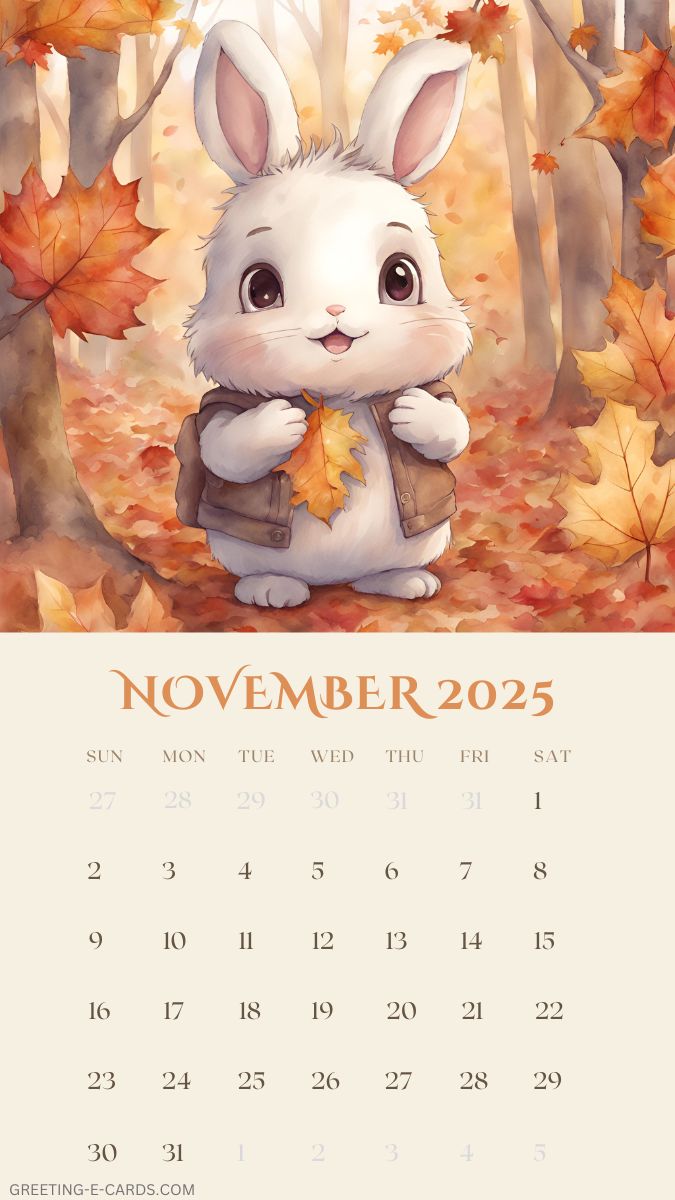 Download this cute bunny November 2025 calendar phone wallpaper for your mobile lockscreen.