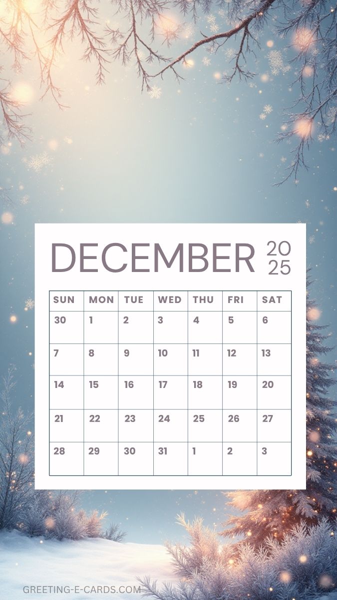 Download this free December calendar phone wallpaper with a winter Christmas scene for your lockscreen.
