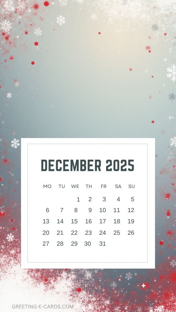 Get this free December calendar phone wallpaper with a festive Christmas theme for your lockscreen.