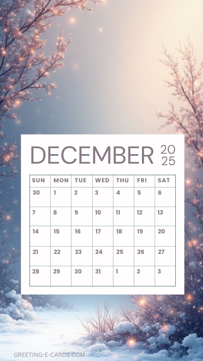 Download this free December calendar phone wallpaper with a beautiful winter nature background for your lockscreen.