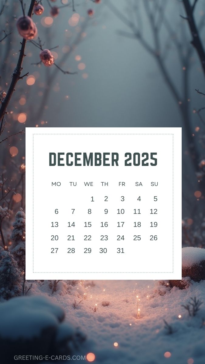 Get this free December 2025 calendar phone wallpaper for your lockscreen.