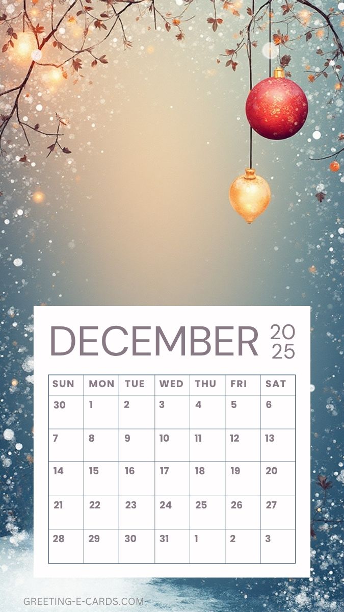Get this free December 2025 Christmas calendar phone wallpaper for your lockscreen.