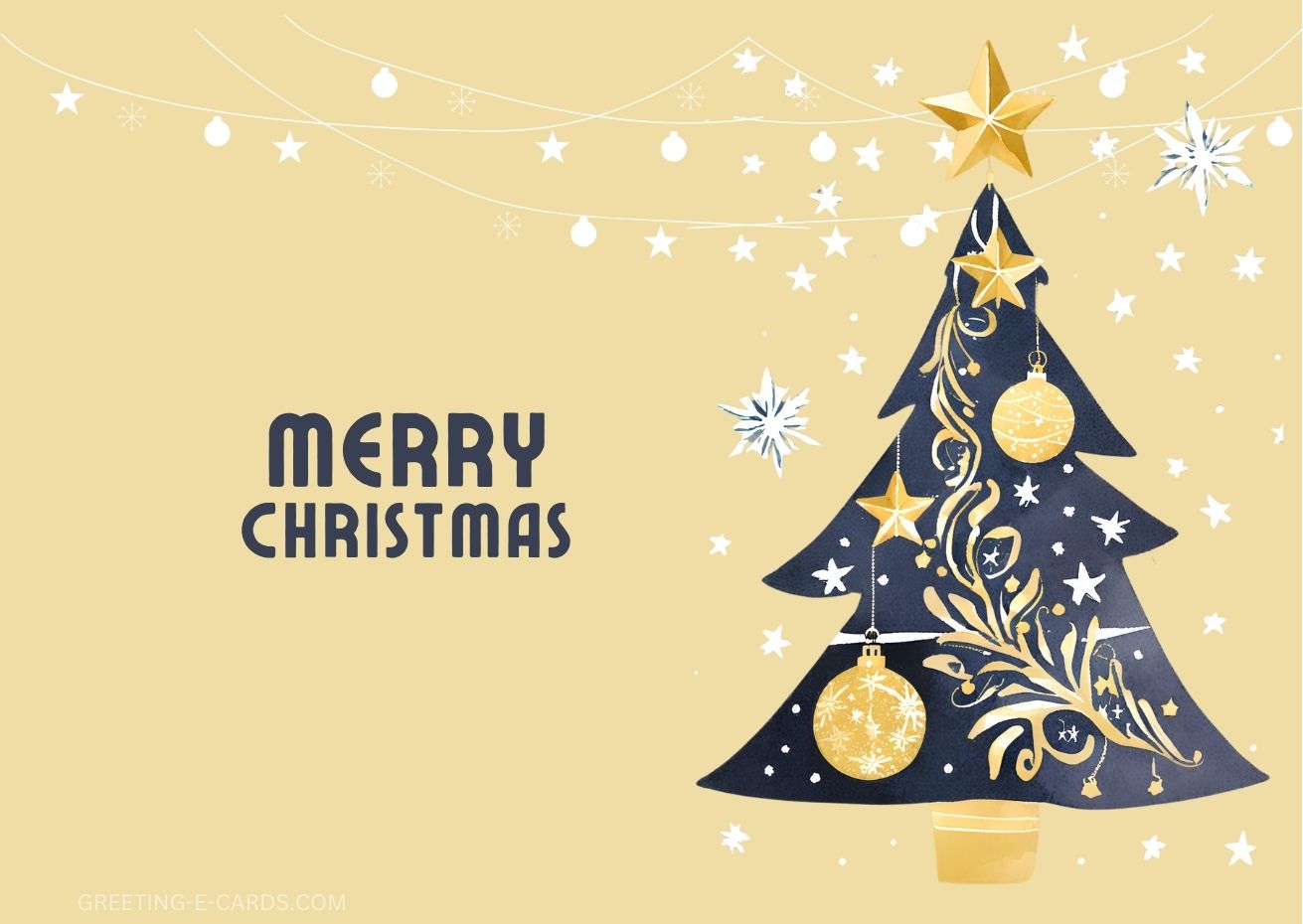 Send this elegant Christmas e-card with a gold and navy tree design to your loved ones this holiday season.