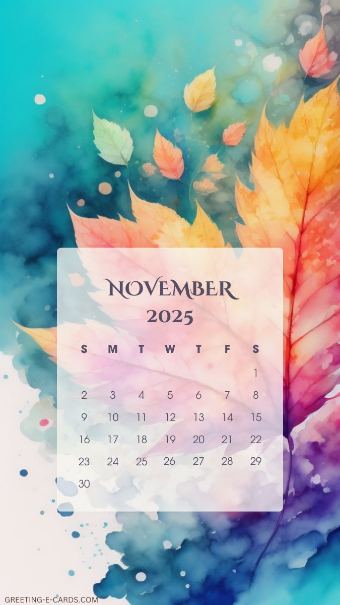 Thanksgiving November 2025 Calendar Phone Wallpaper