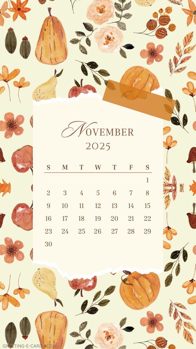 Get this free November 2025 calendar phone wallpaper with a cute fall aesthetic for your lockscreen.