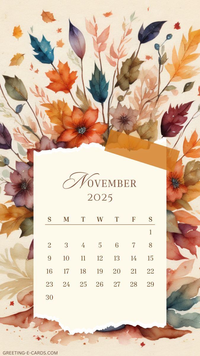 Get this free November calendar phone wallpaper with beautiful floral designs for your phone's lockscreen.