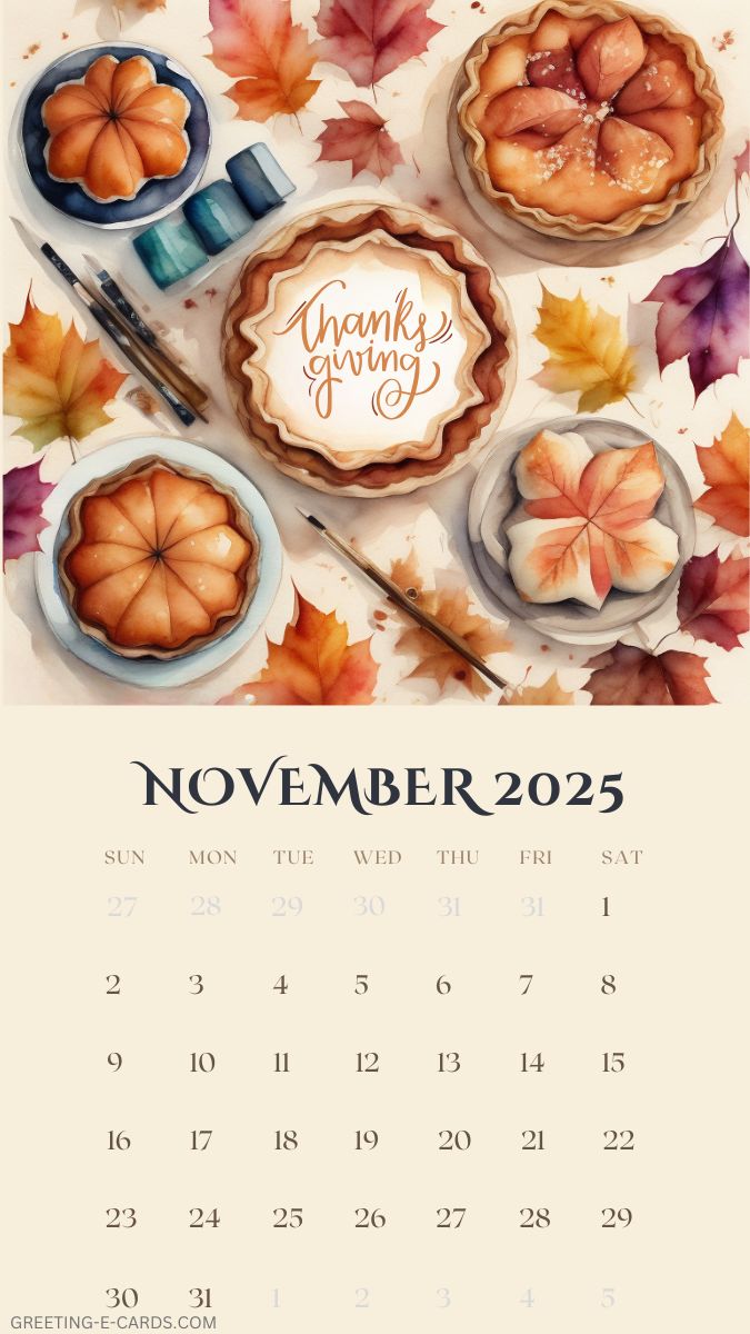 Thanksgiving November 2025 Calendar Phone Wallpaper