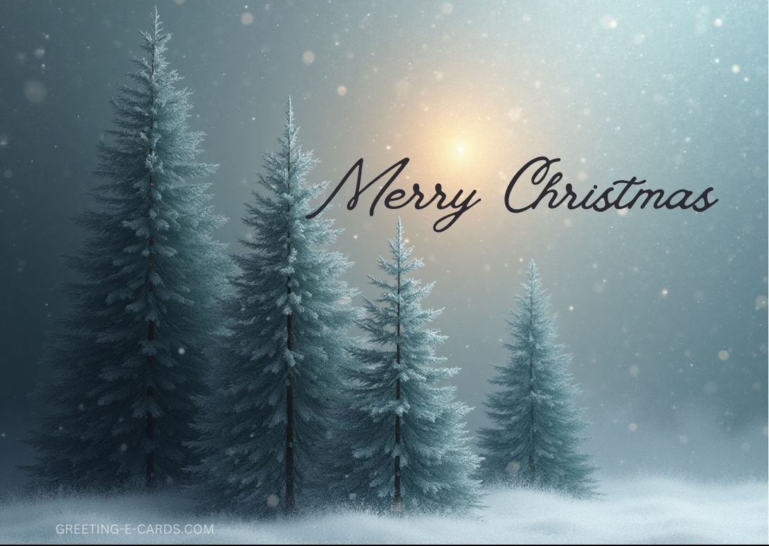 Send this free online card with snow-covered trees to wish your loved ones a Merry Christmas.